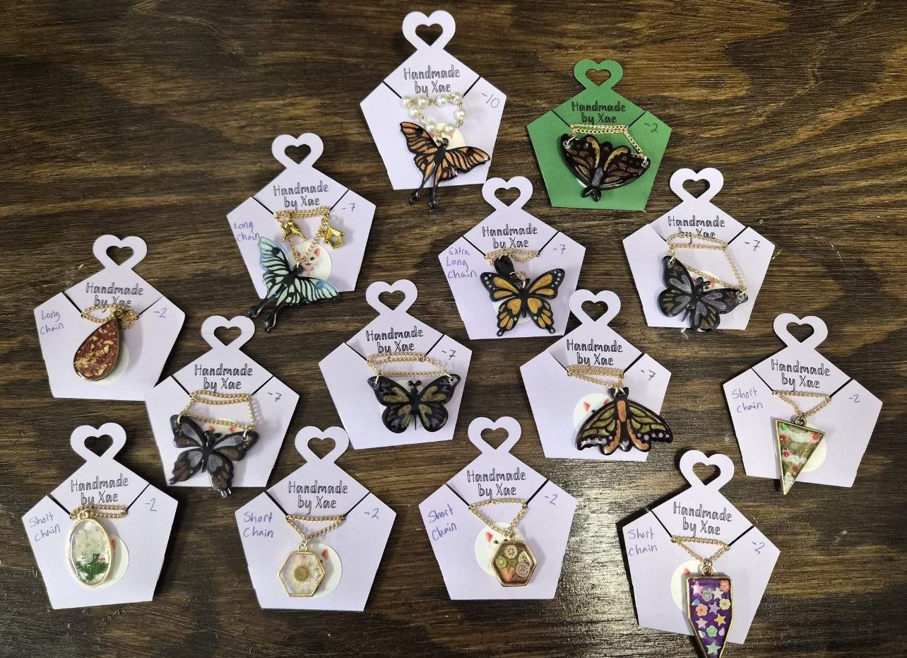 Beautiful uv resin jewelry. Handmade by our very own Xae. Each piece has been crafted and some painted by hand.